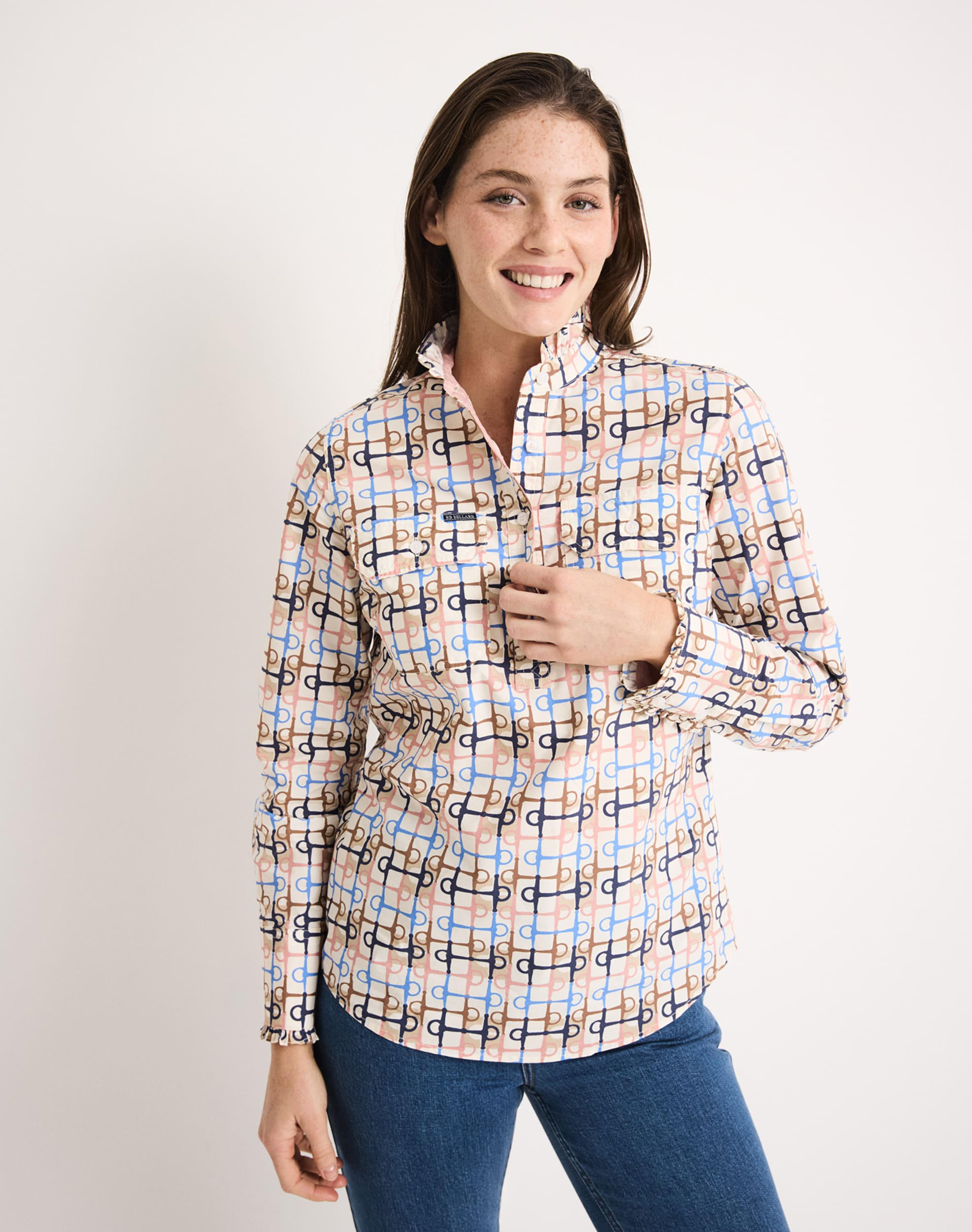 Frill detail stand collar and cuffs