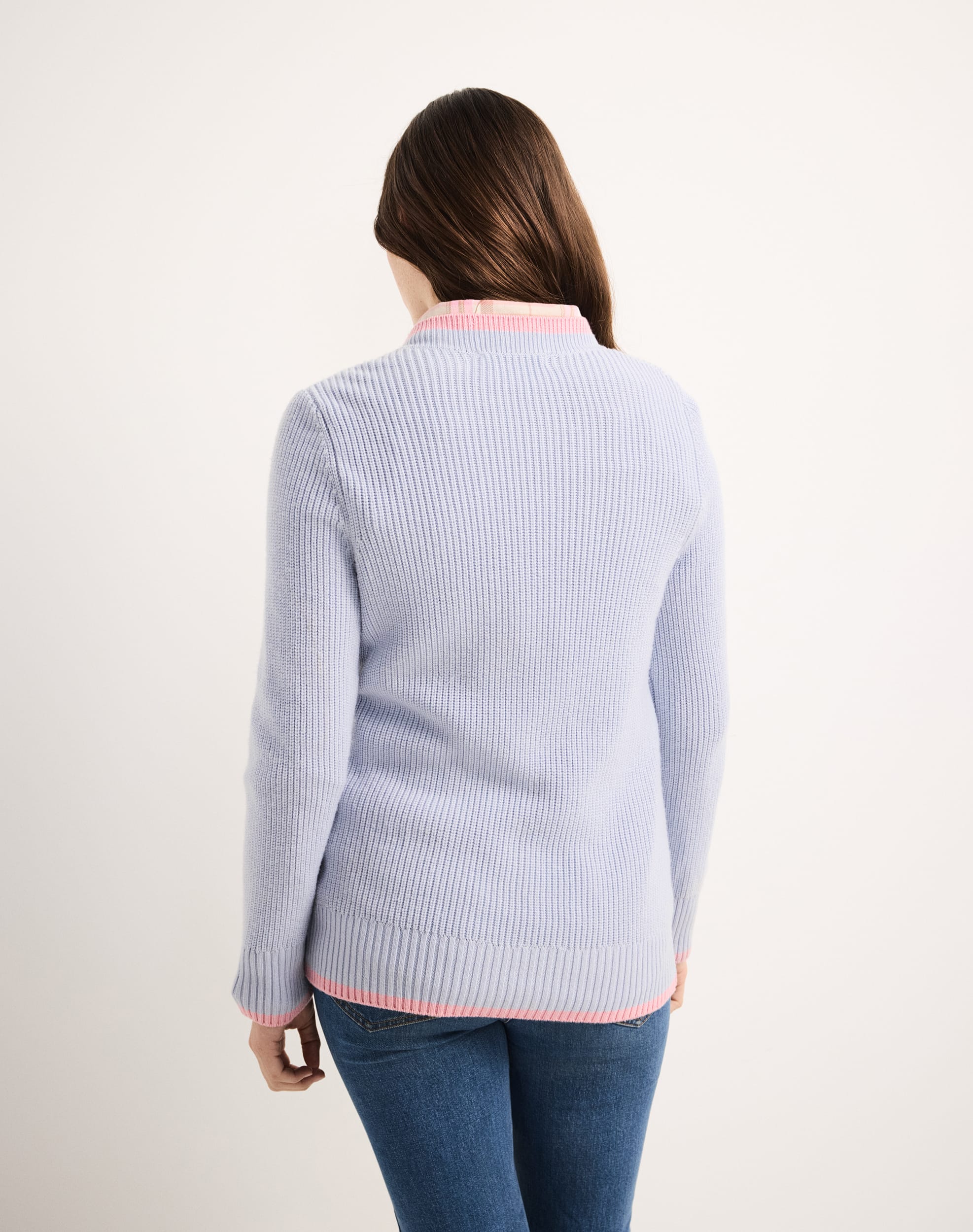 Contrast tipping detail at neck, sleeve hem & hem edge