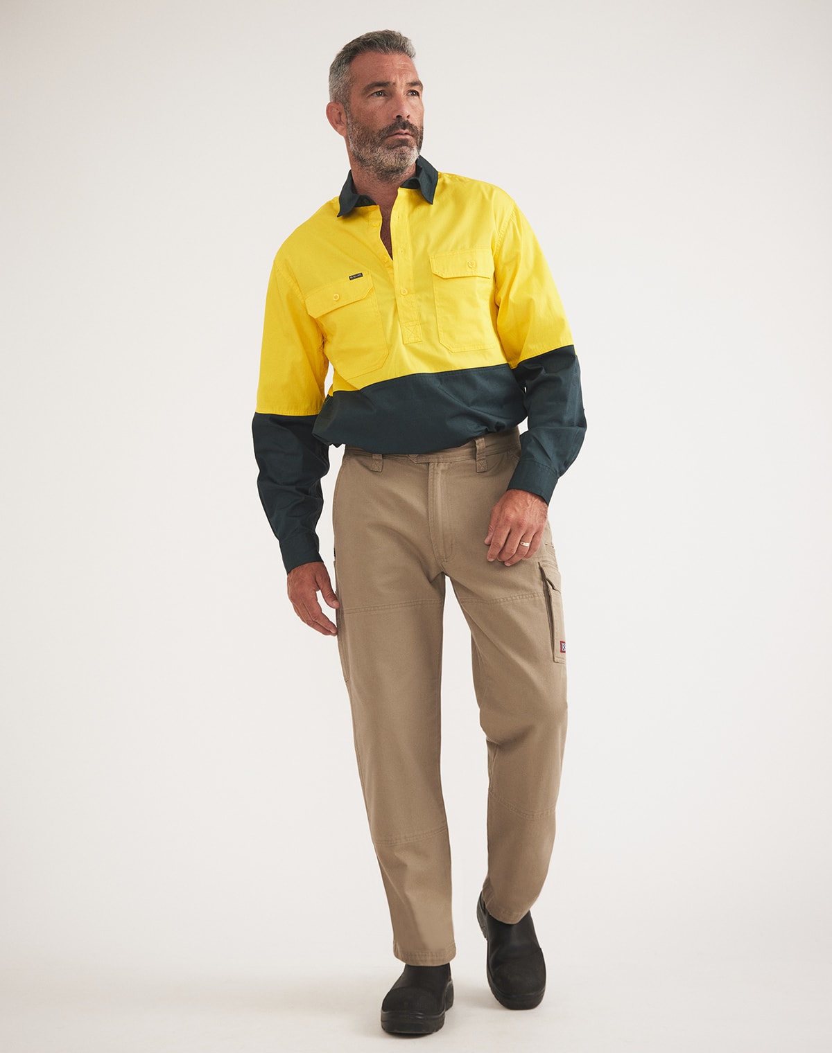 With new and improved features including 13 pockets and reinforced stitching, the Utility Trouser is an obvious choice for your everyday work wear.