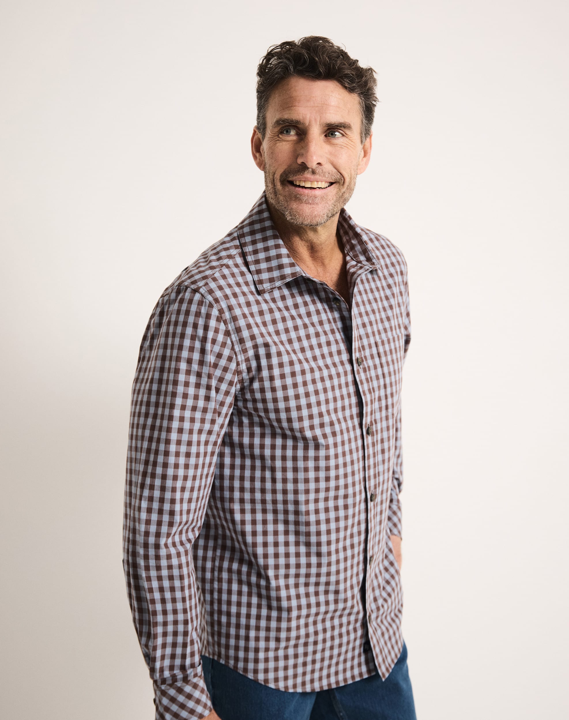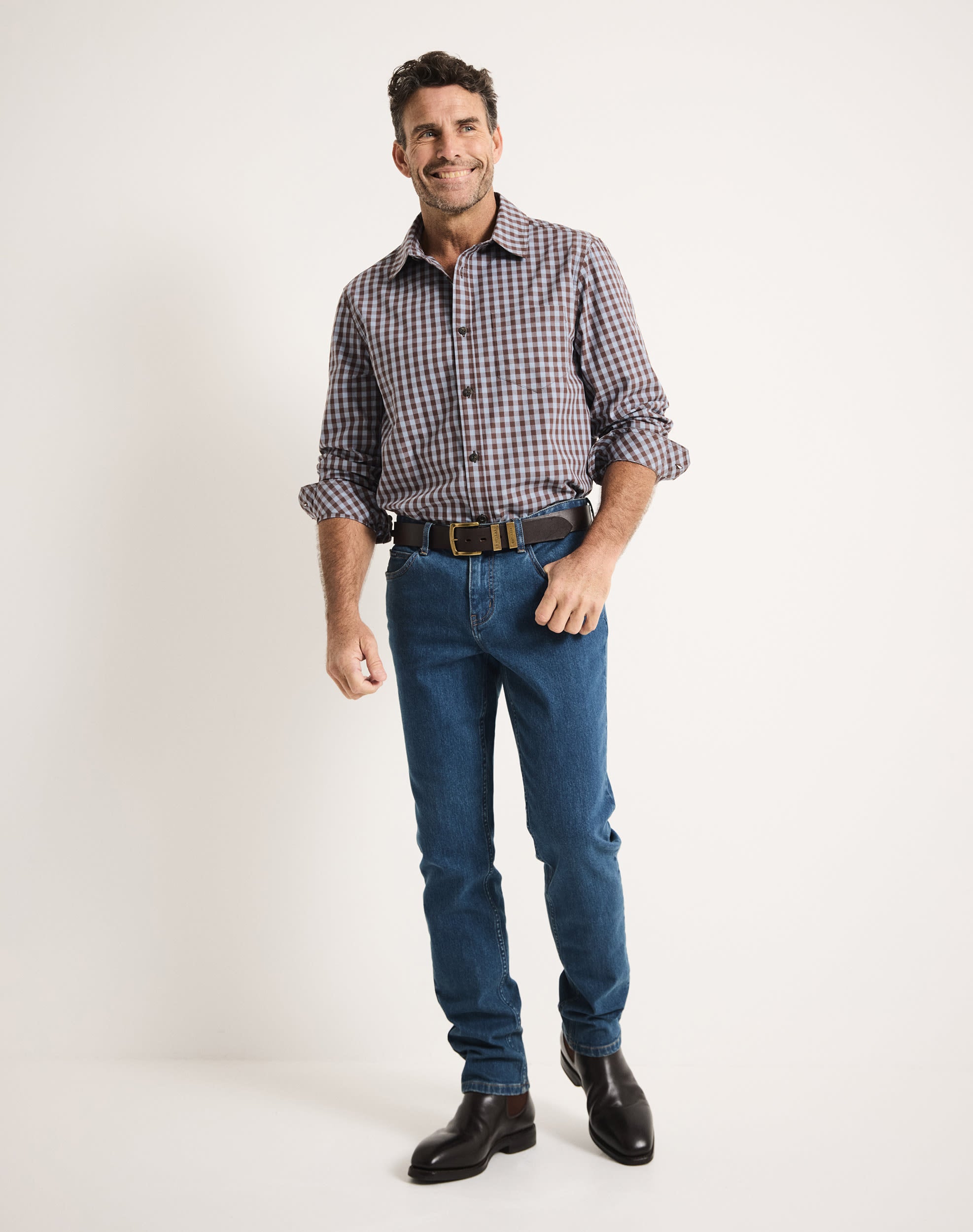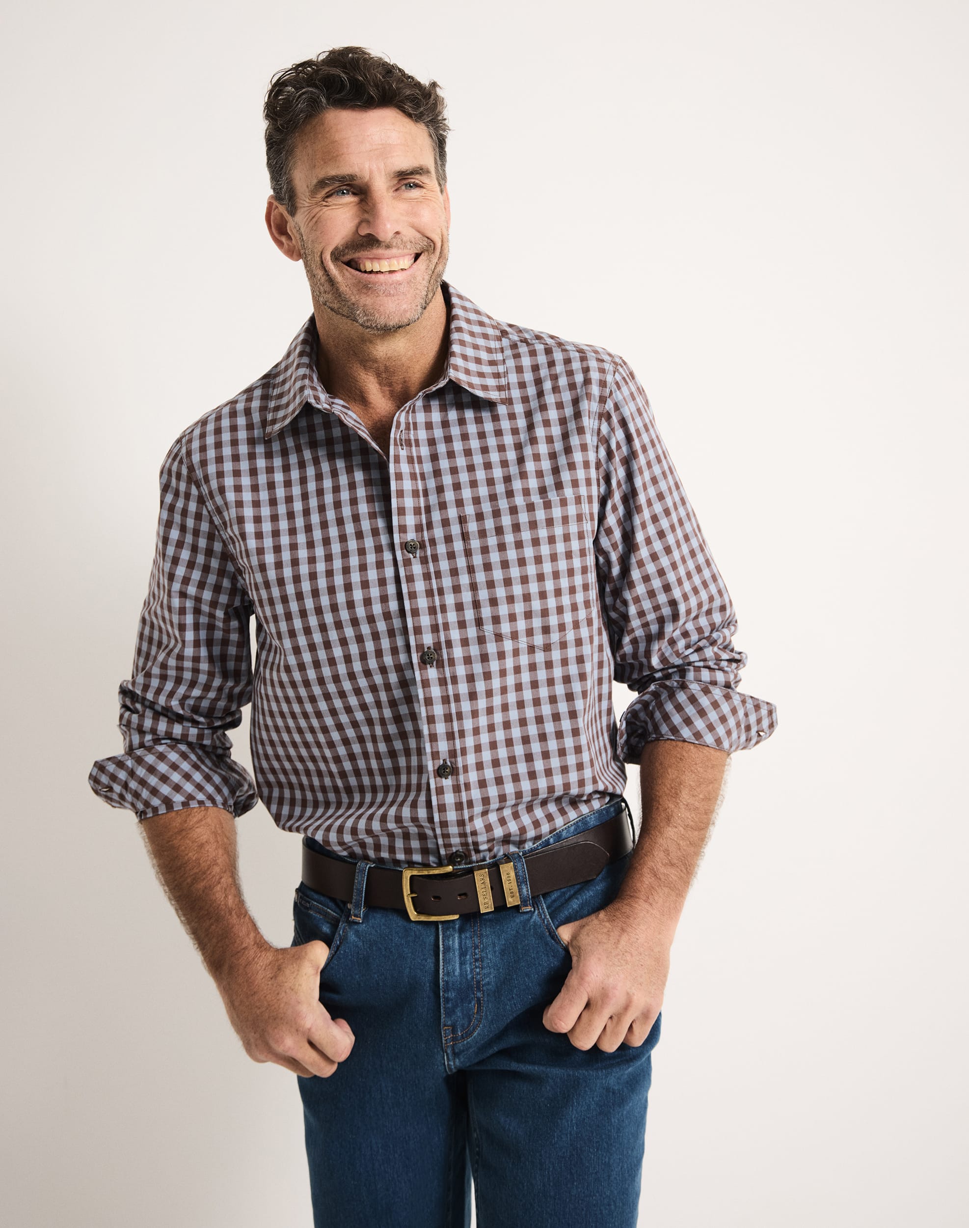 Our Barossa Shirt delivers practical casual style in a regular fit. Crafted from 100% cotton in a burgundy and pale blue check.