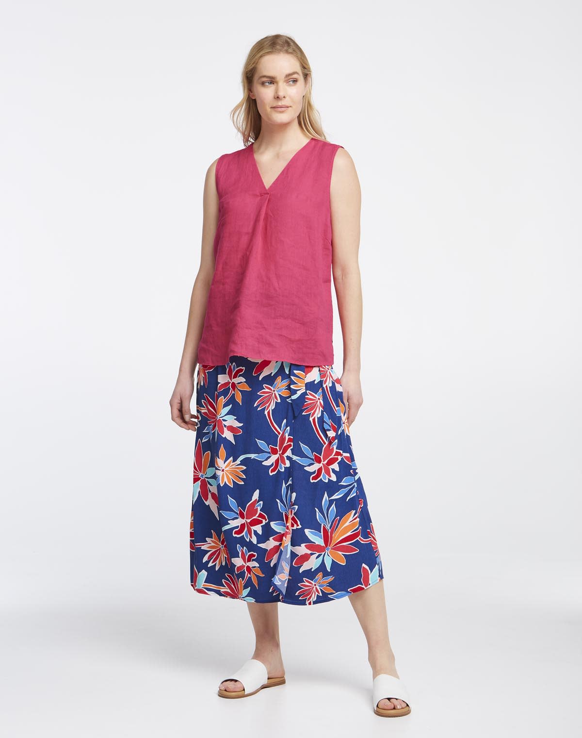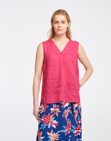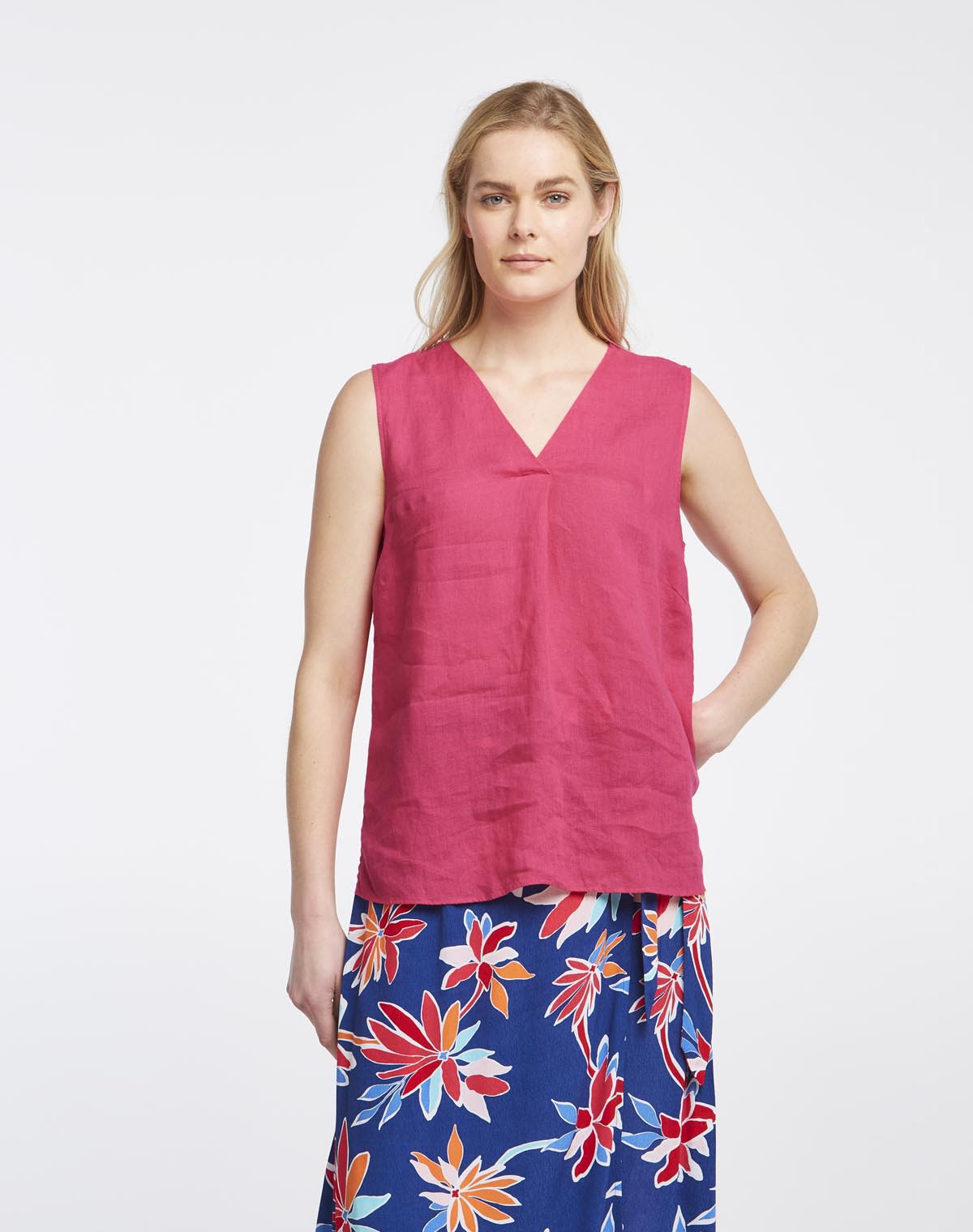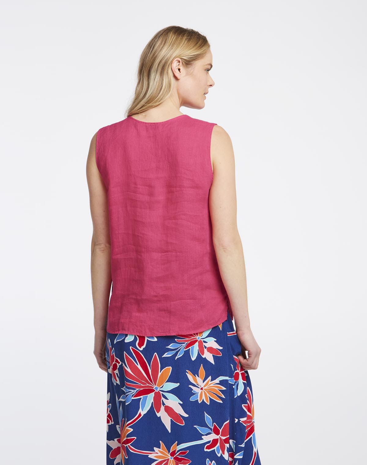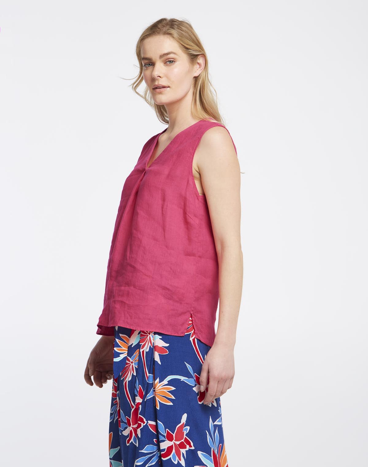 Easy elegance in breathable style. The 100% linen Valencia Top features fine details from neckline to hemline, and pairs back with everything from pants and skirts to shorts.