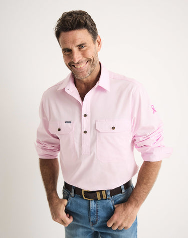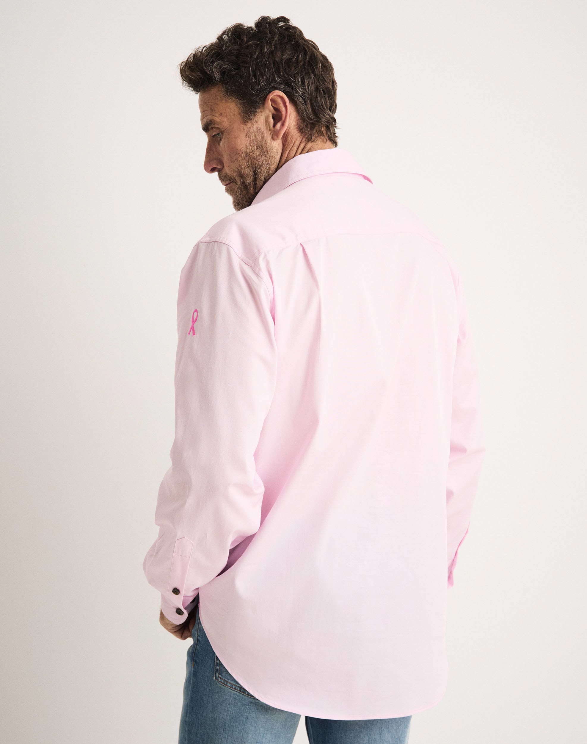 Working hard for a cure. The Burton Workshirt you know and love, in limited edition pale pink with an embroidered ribbon. $5 from every shirt supports the National Breast Cancer Foundation. Made from 100% Australian cotton, backing our farmers.