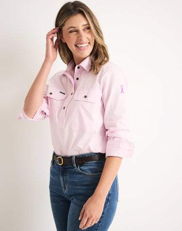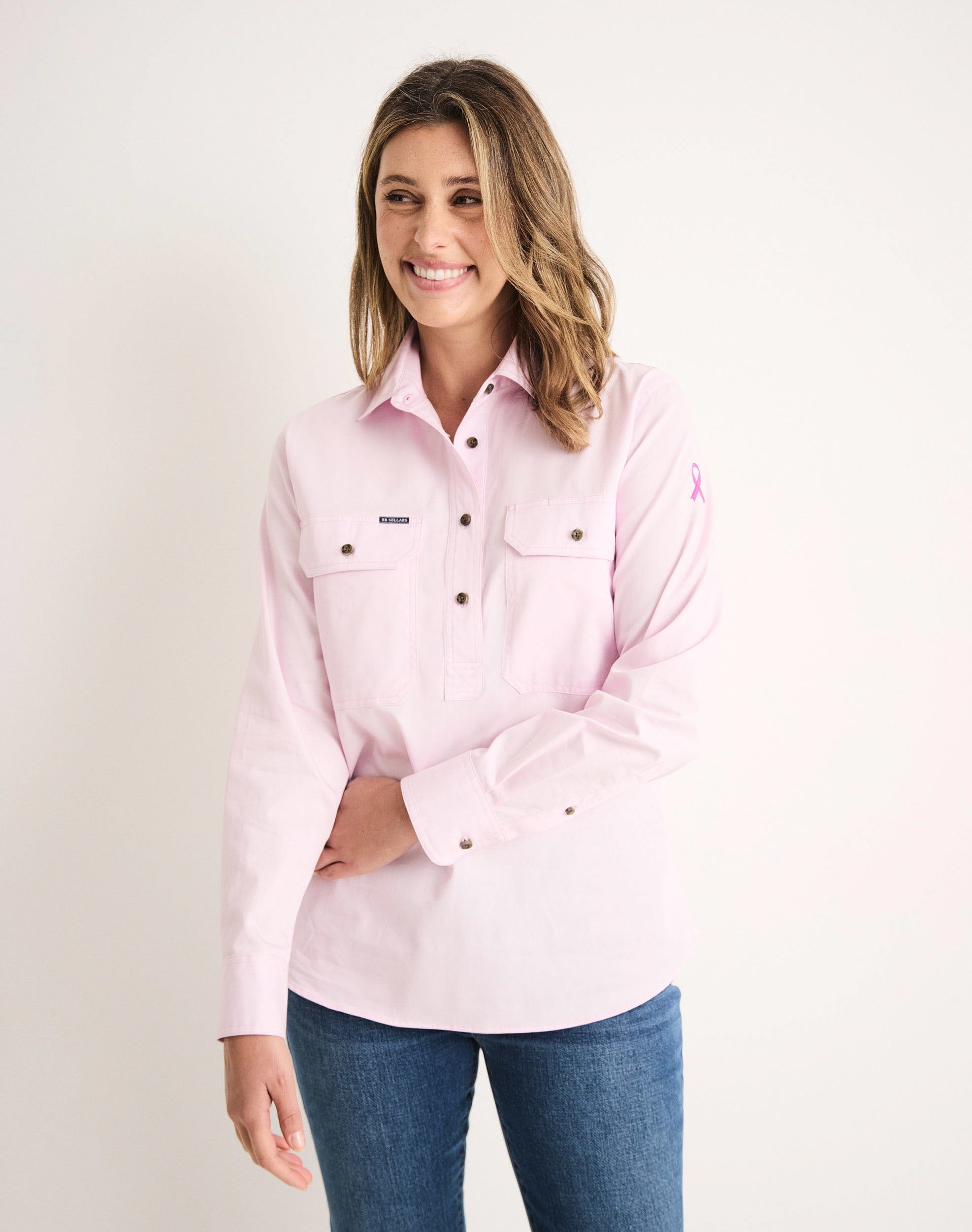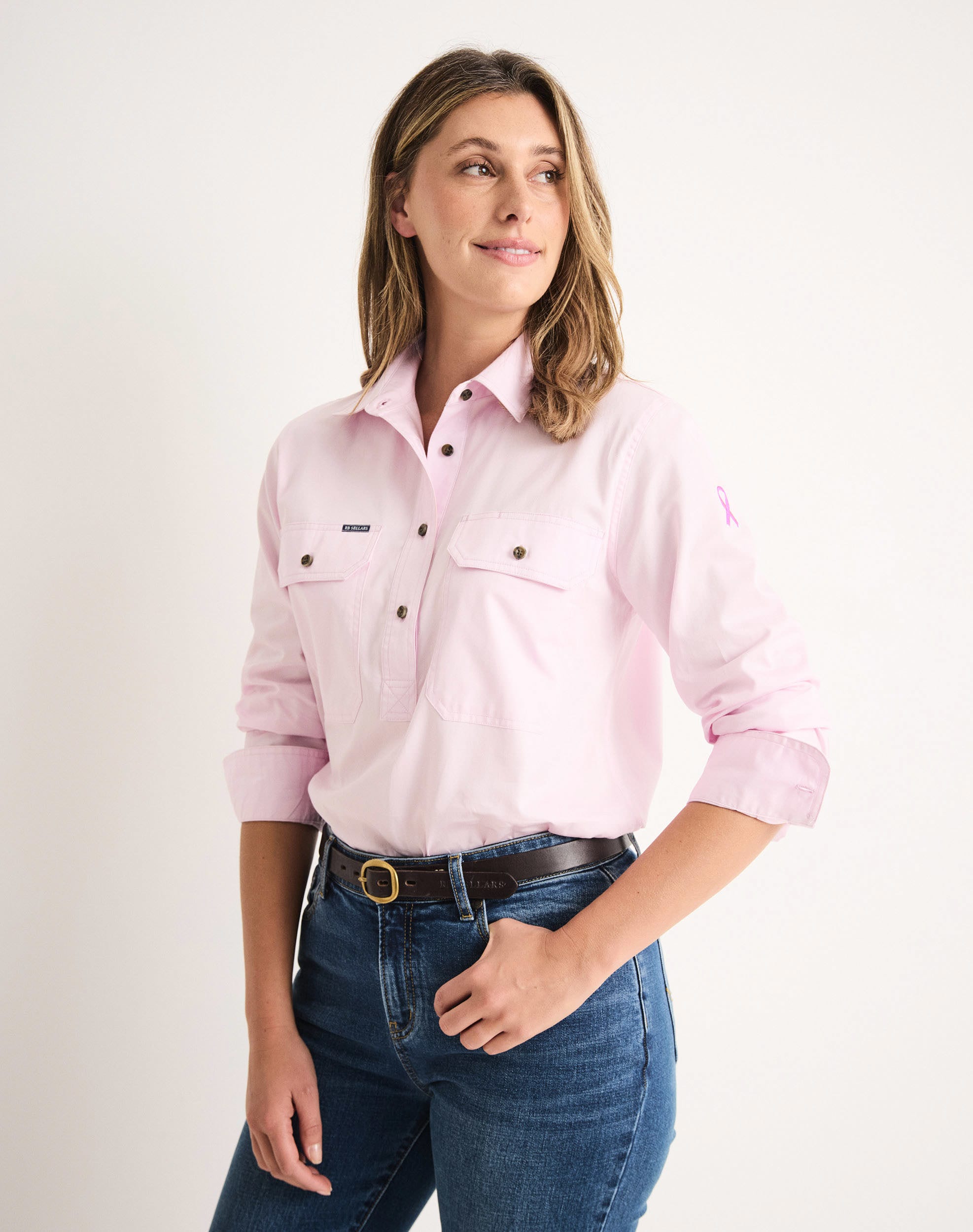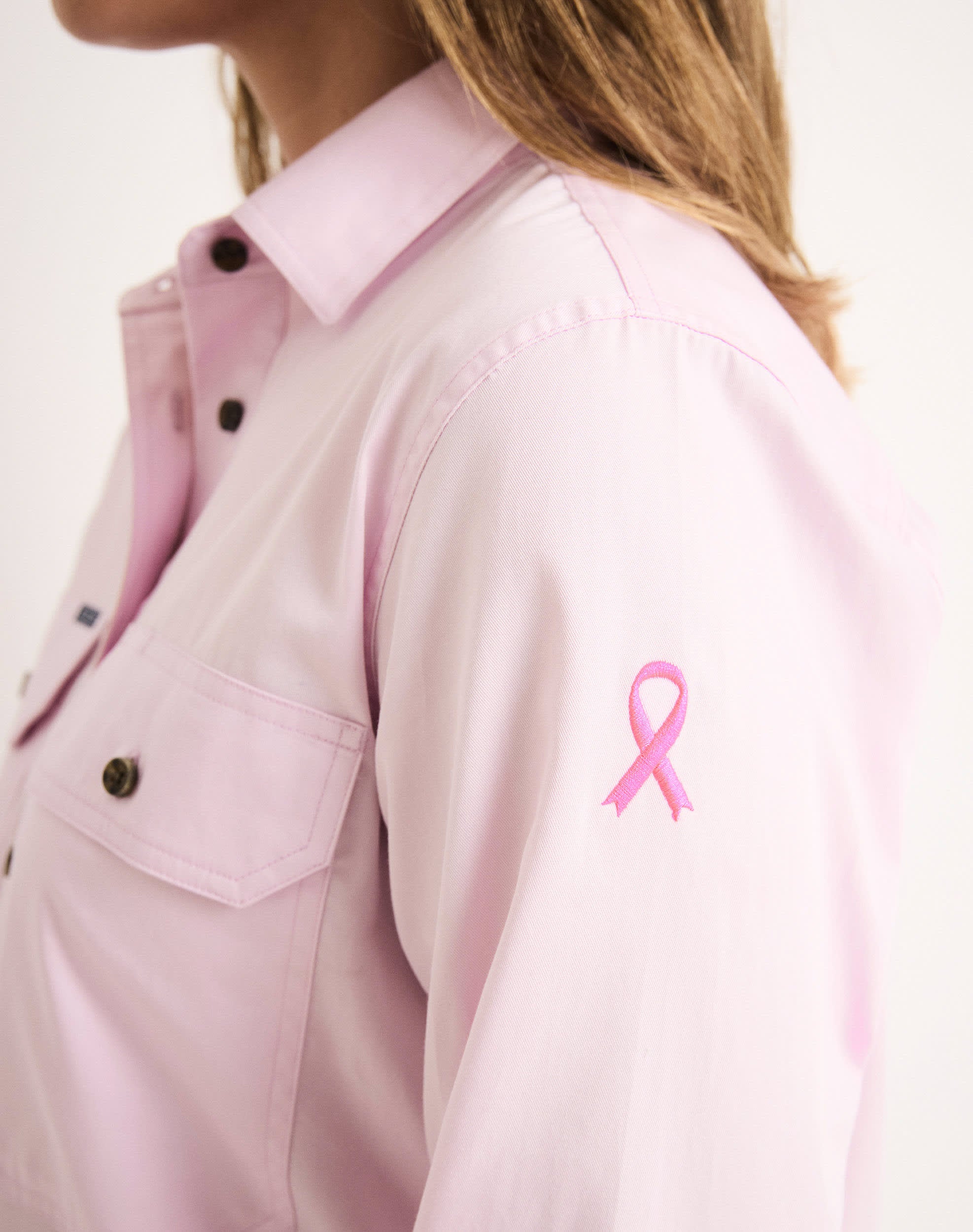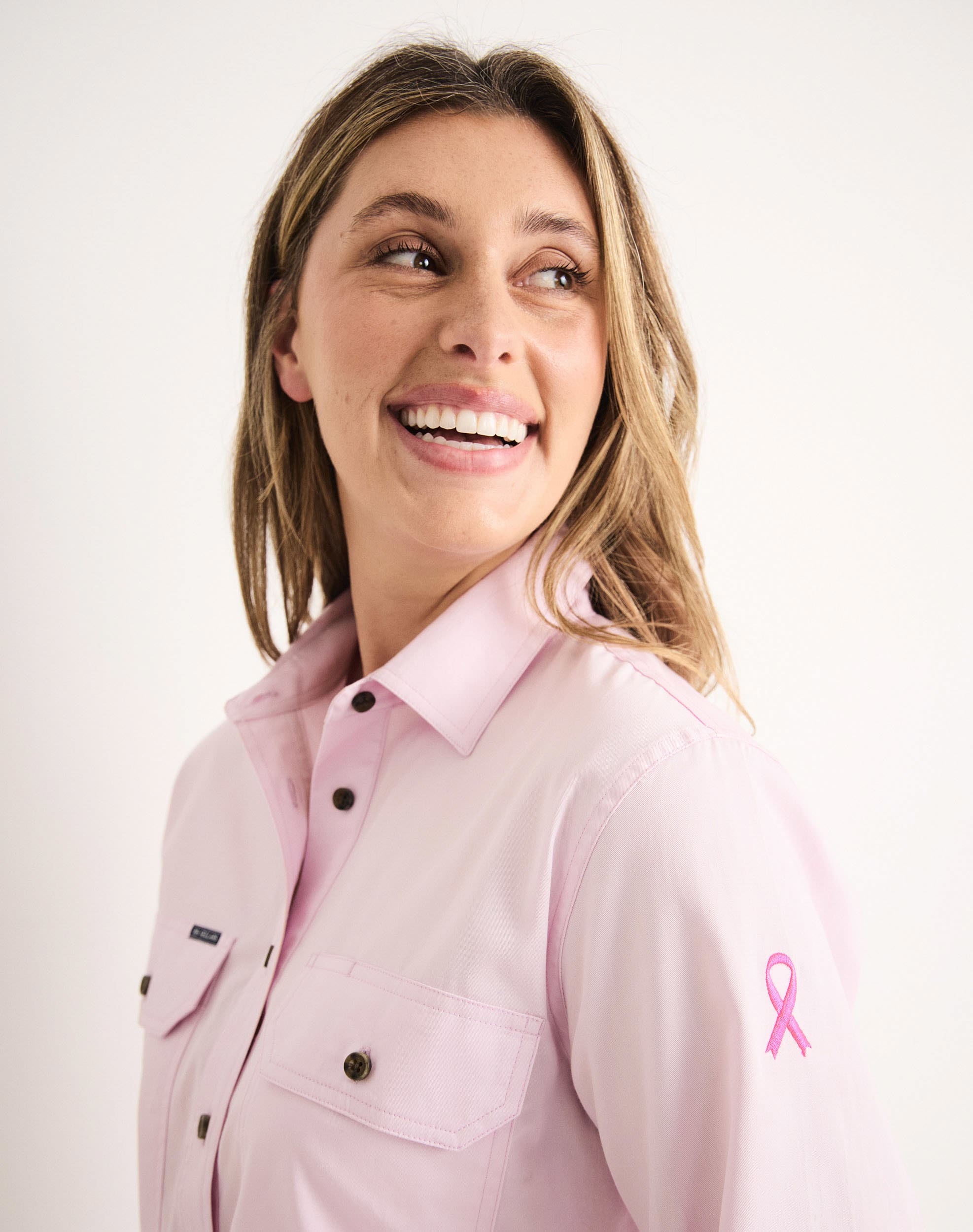 Working hard for a cure. The Sandy Workshirt you know and love, in limited edition pale pink with an embroidered ribbon. $5 from every shirt supports the National Breast Cancer Foundation. Made from 100% Australian cotton, backing our farmers.
