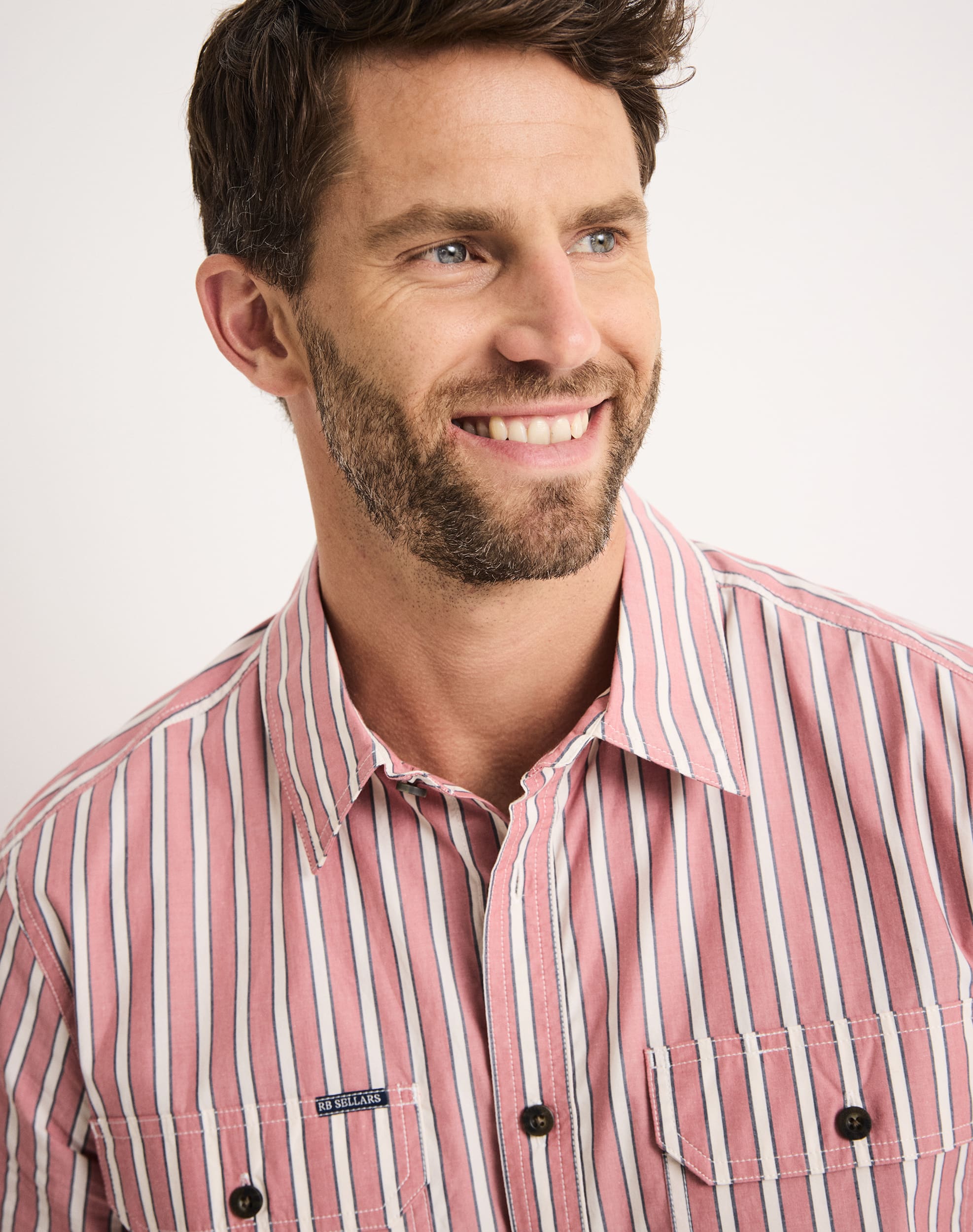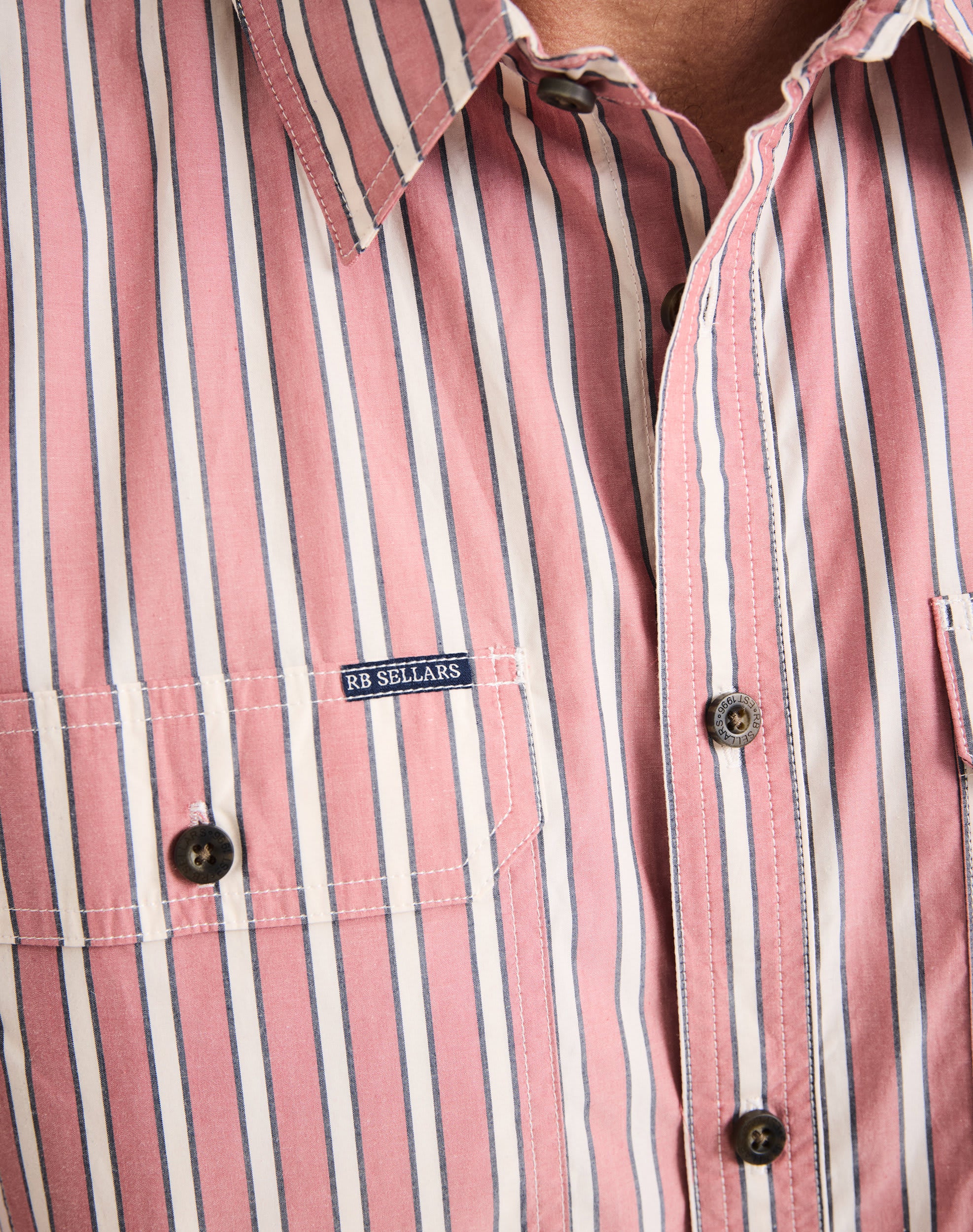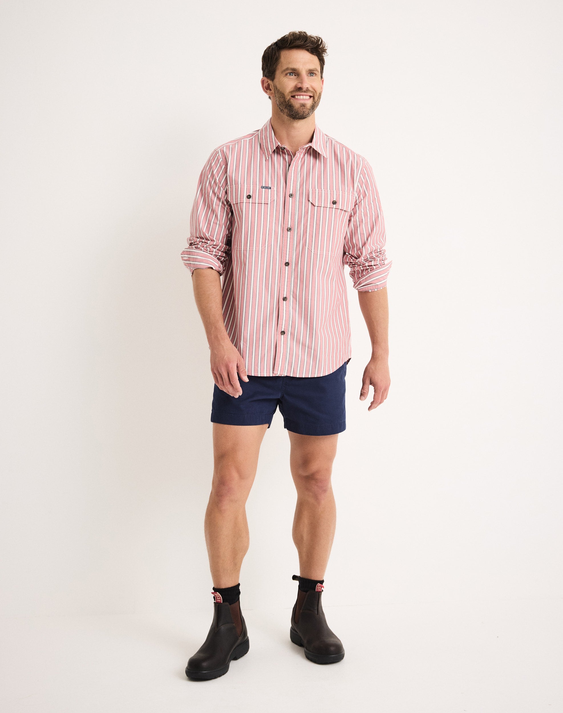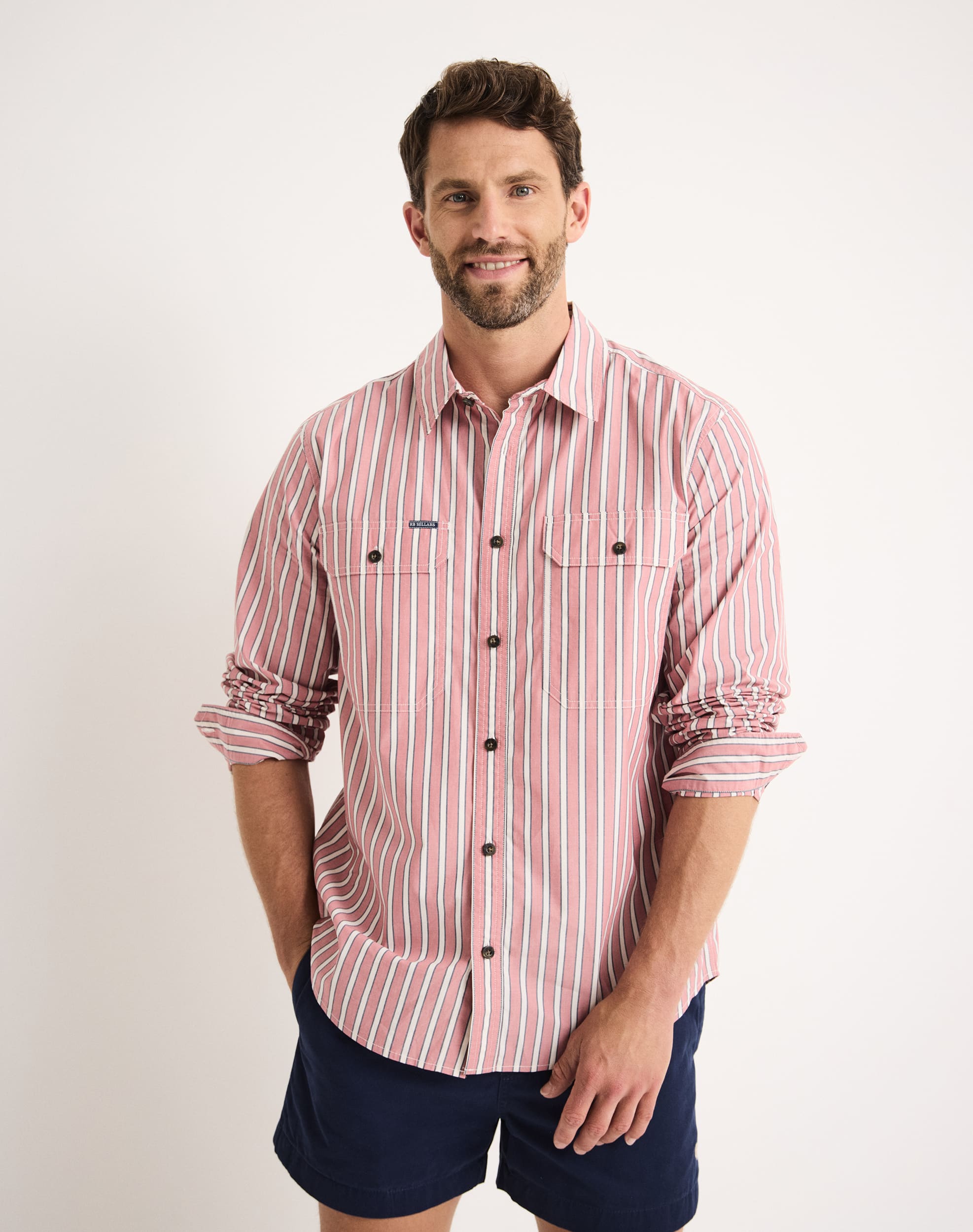 Two chest pockets with flap closures and pen slip